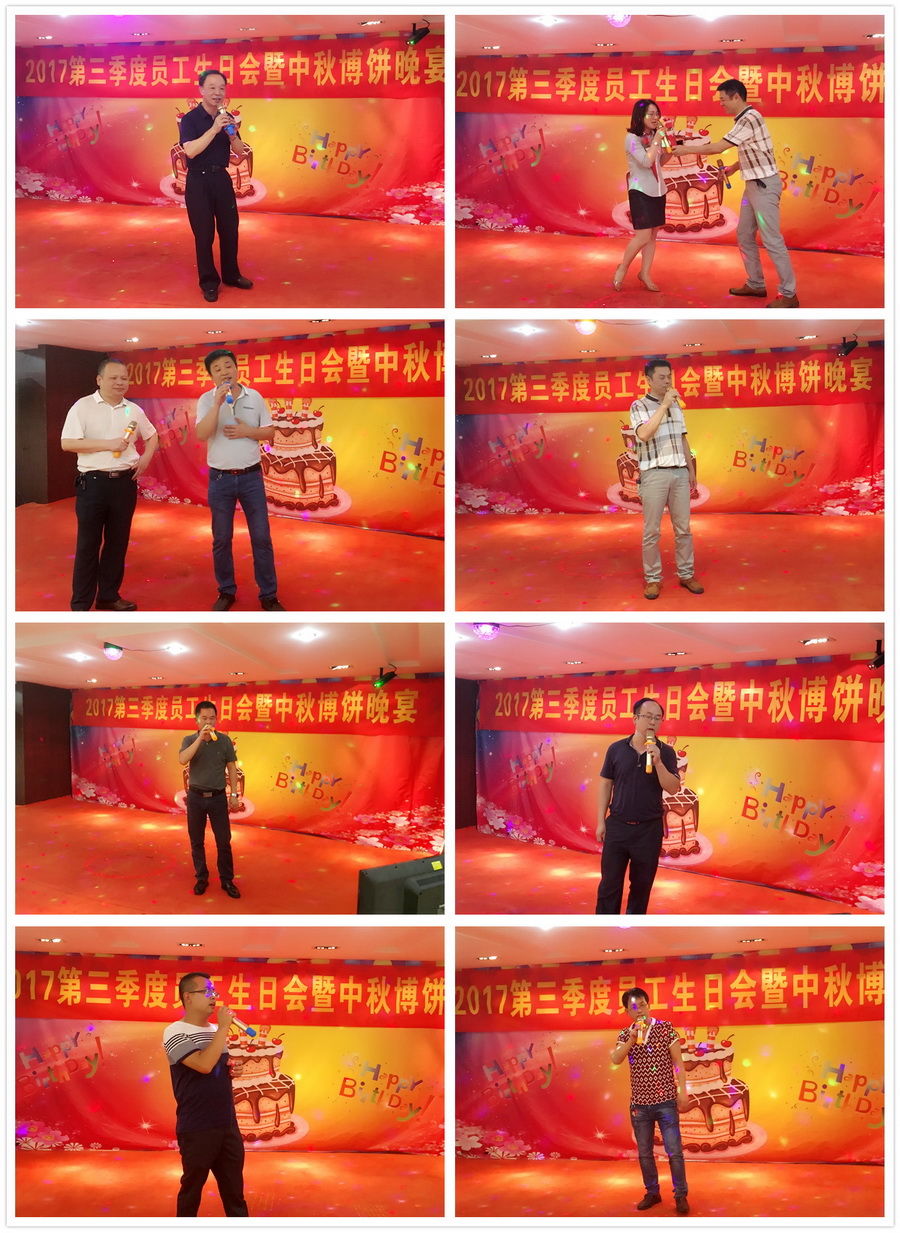 金秋九月,它不僅給我們帶來了涼涼的秋意,還為我們迎來了中國傳統(tǒng)節(jié)日——中秋佳節(jié)。2017年9月29日晚,在公司行政人事部的統(tǒng)一部署下,“2017第三季度員工生日會(huì)暨中秋博餅晚宴”的聯(lián)歡活動(dòng)在公司七樓多功能廳開展。同時(shí),次日人力行政中心還精心組織開展集體活動(dòng)。